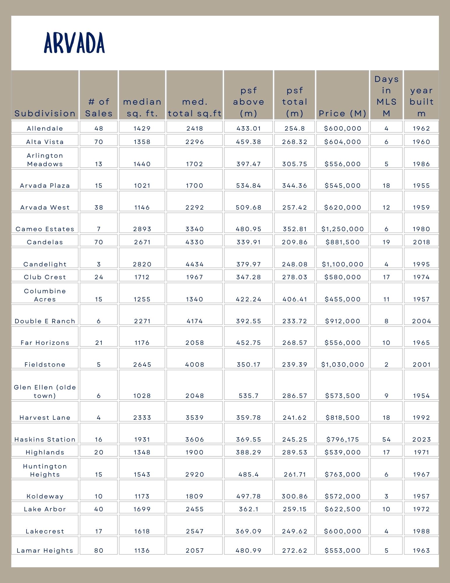 Median Home Prices in the Arvada Suburbs